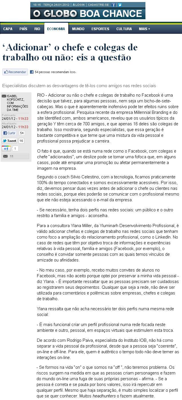 01/2012 - O Globo - Boa Chance