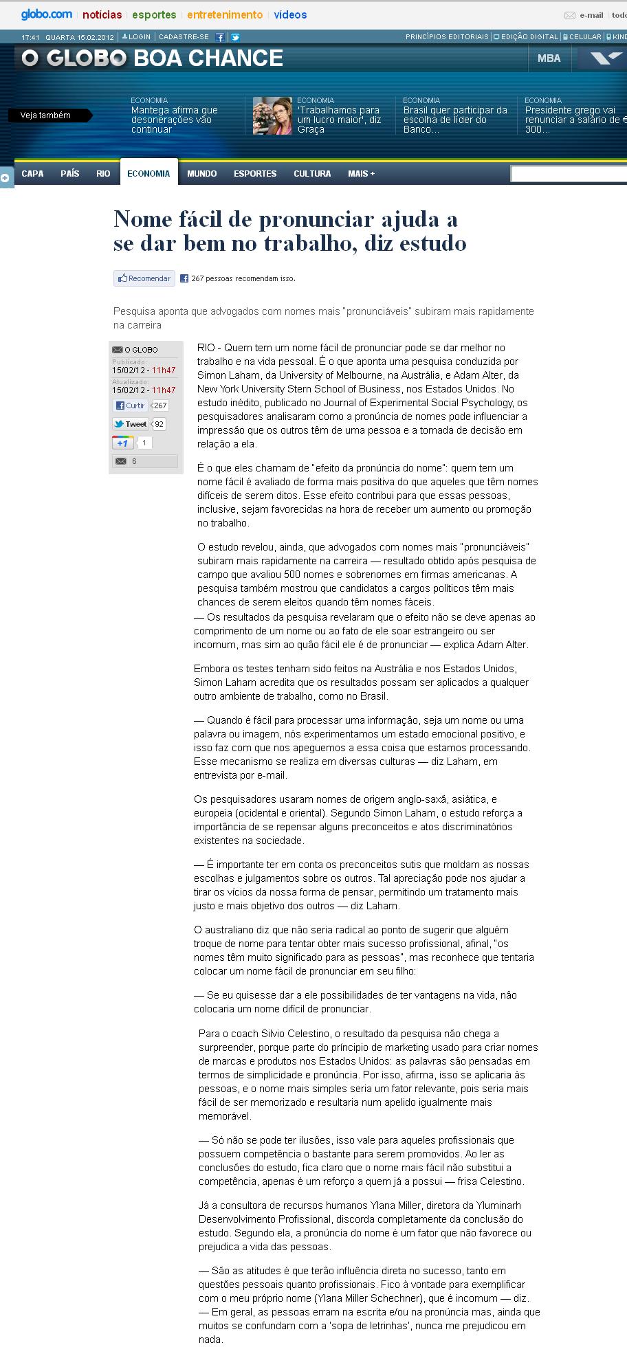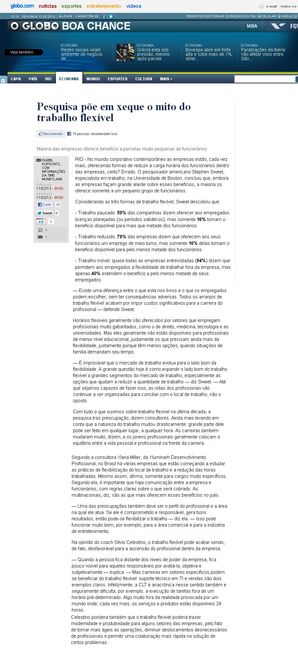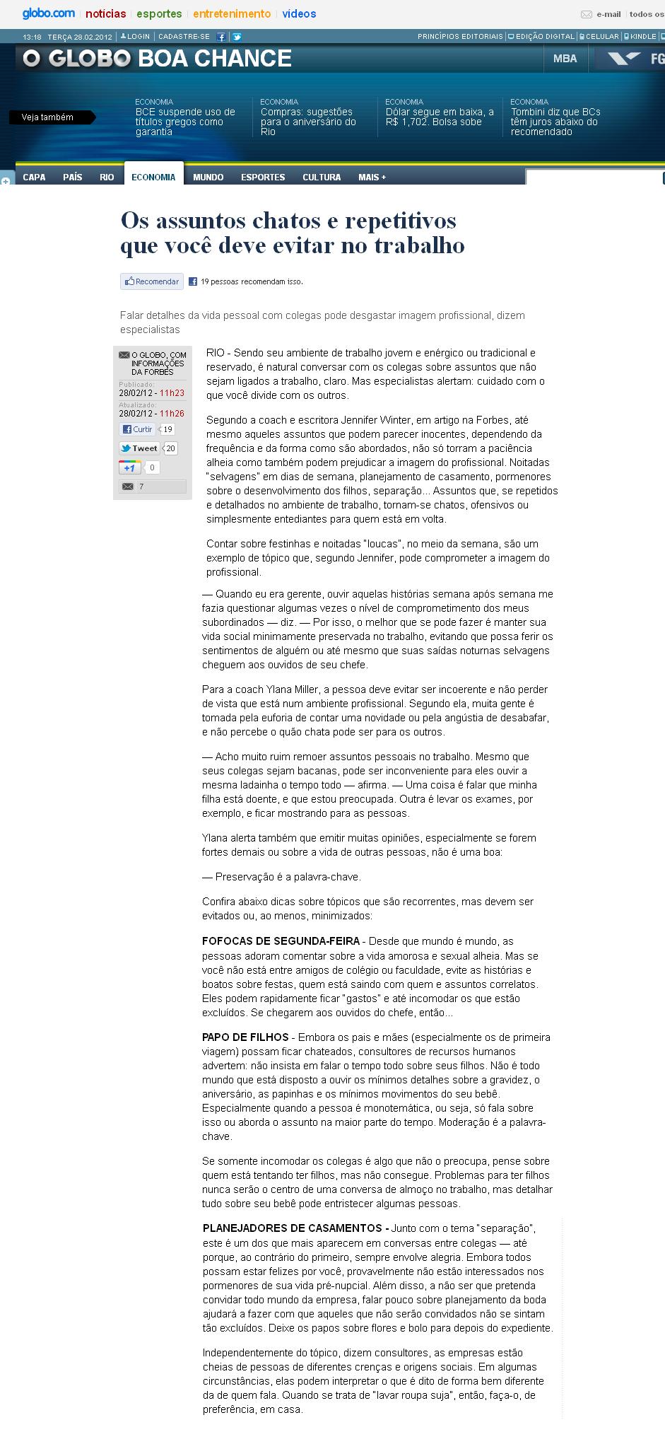 02/2012 - O Globo - Boa Chance