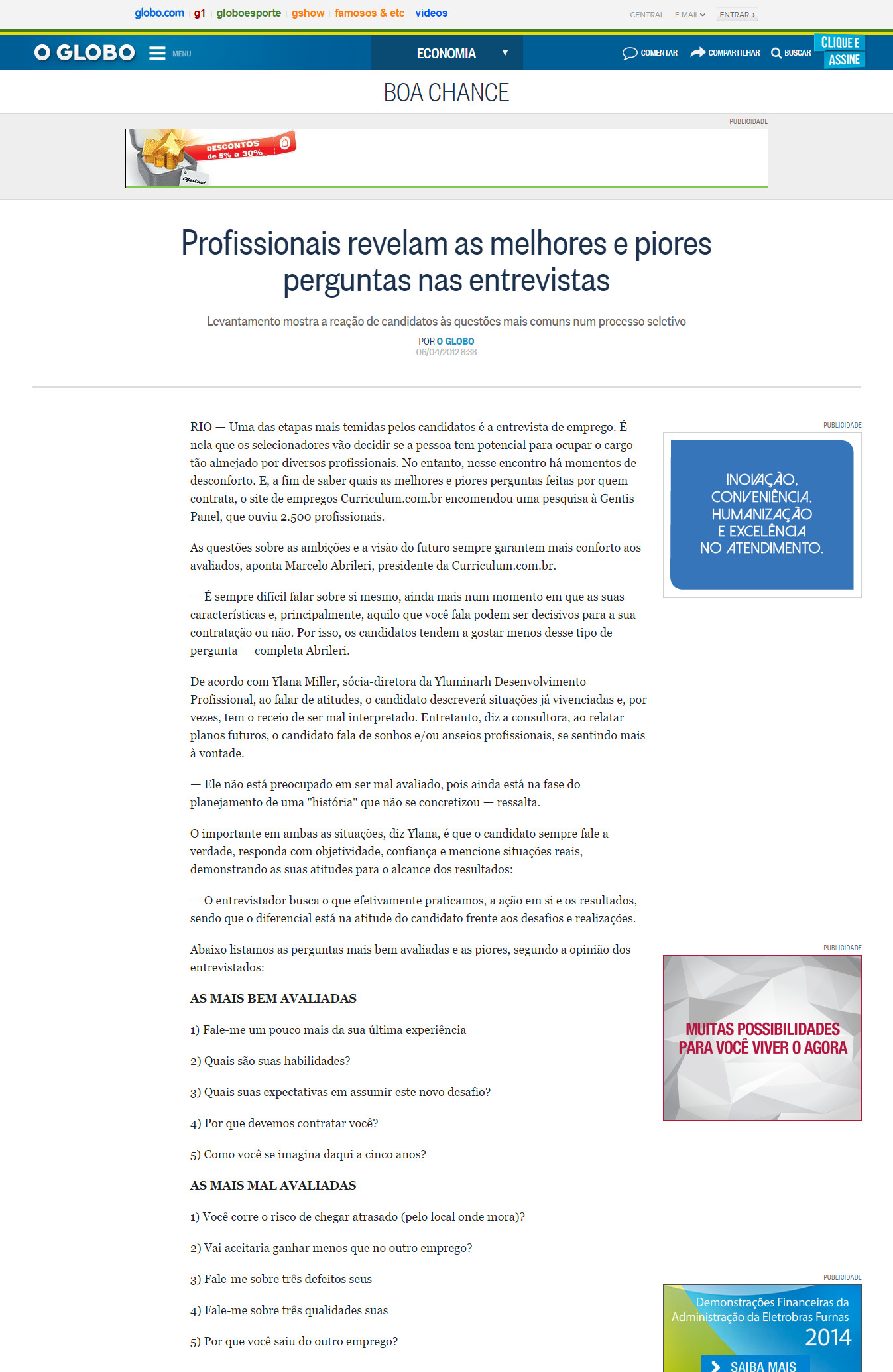 04/2012 - O Globo Boa Chance