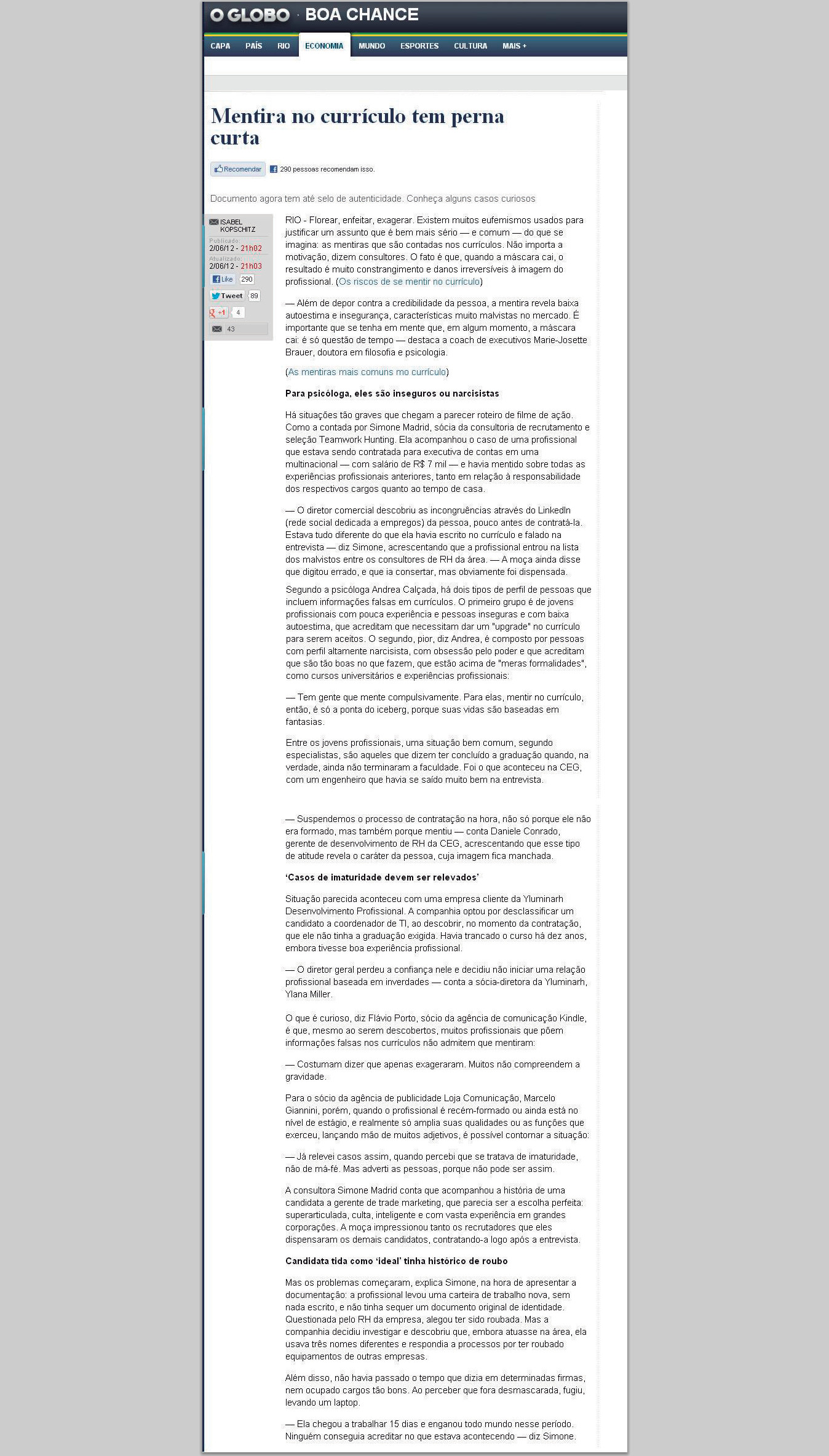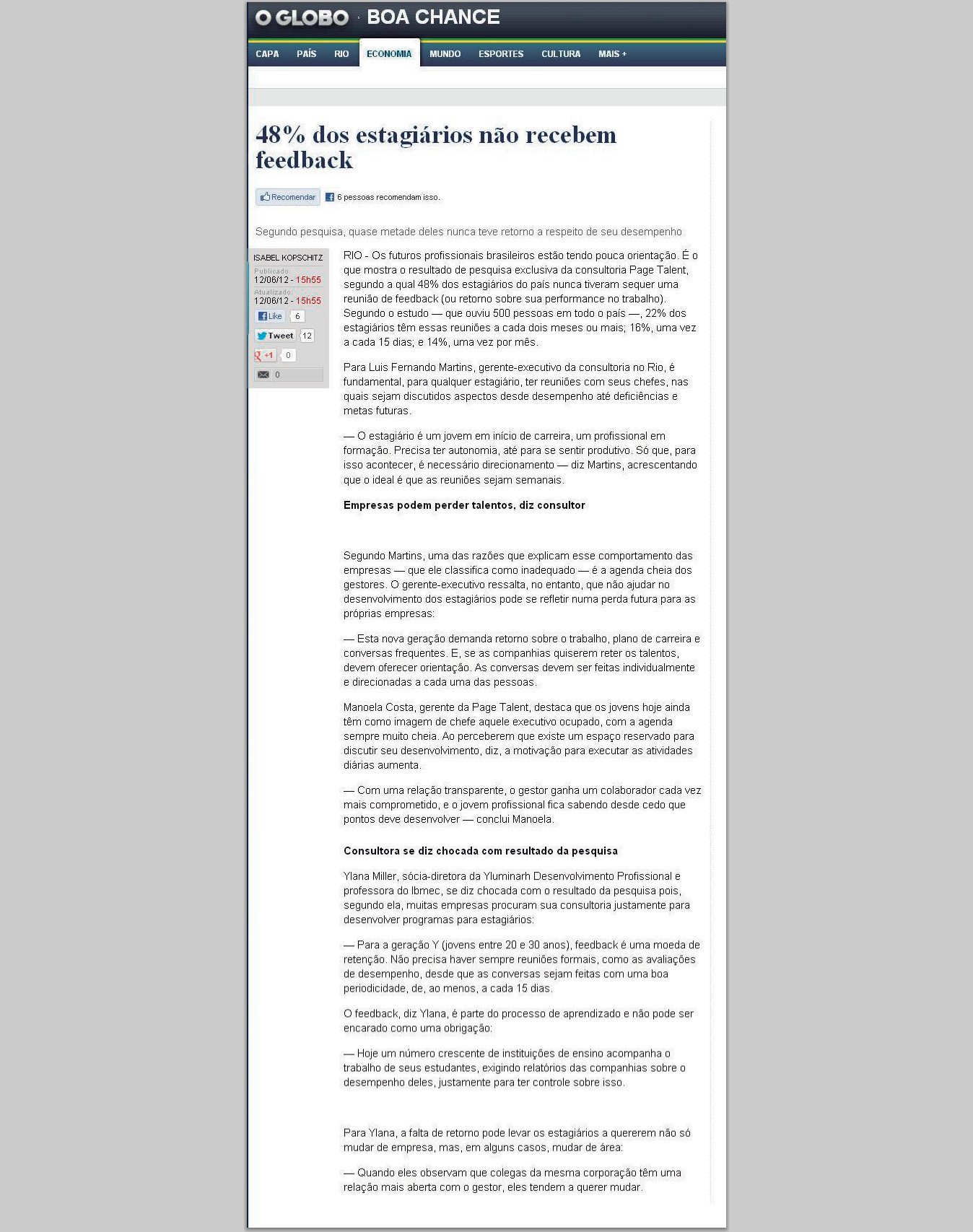 06/2012 - O Globo - Boa Chance