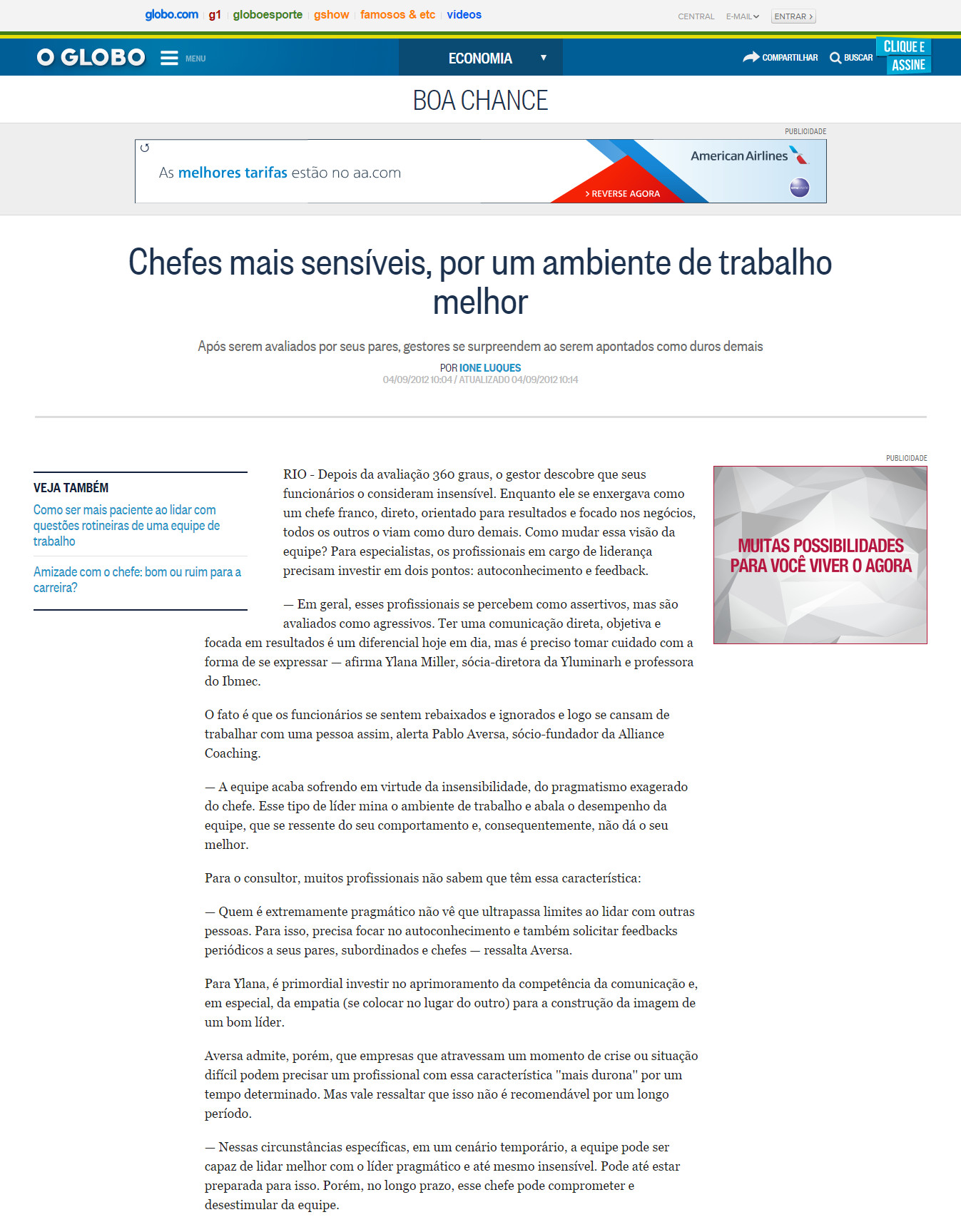 09/2012 - O Globo - Boa Chance