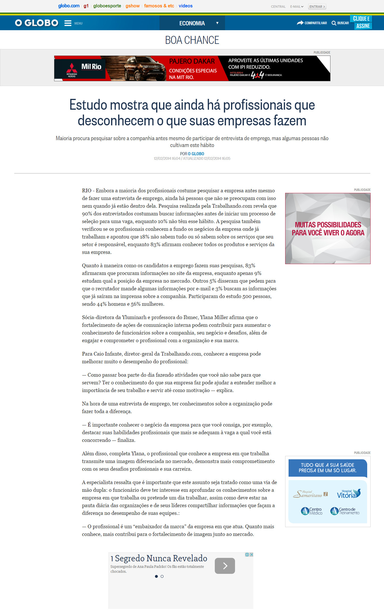 02/2014 - O Globo - Boa Chance